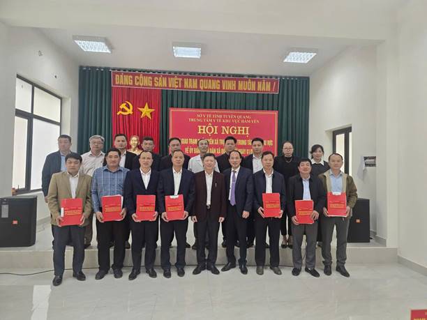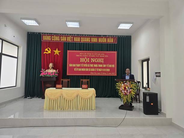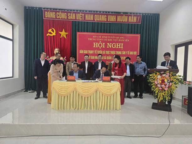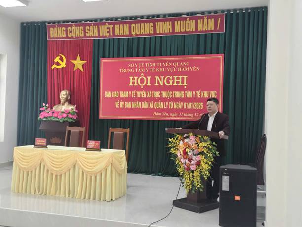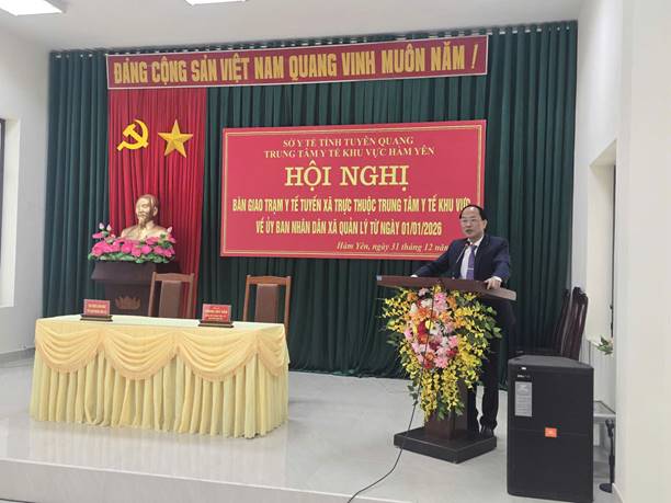 Thực hiện Quyết định số 1723/QĐ-UBND ngày 30/12/2025 của Ủy ban nhân dân tỉnh Tuyên Quang về việc sắp xếp, chuyển giao trạm y tế, phòng khám đa khoa khu vực thuộc Sở Y tế về Ủy ban nhân dân xã, phường quản lý; Quyết định số 2072/QĐ-SYT ngày 30/12/2025 của Sở Y tế tỉnh Tuyên Quang về việc điều chuyển viên chức, người lao động từ Trạm Y tế xã thuộc Trung tâm Y tế khu vực Hàm Yên tỉnh Tuyên Quang sang Ủy ban nhân dân xã. Ngày 31 tháng 12 năm 2025, Trung tâm Y tế khu vực Hàm Yên tổ chức Hội nghị bàn giao Trạm Y tế về Ủy ban nhân dân xã quản lý. Dự hội nghị có đồng chí Phạm Quang Thanh – Phó Giám đốc Sở Y tế tỉnh Tuyên Quang, đồng chí Phùng Duy Bảo – Giám đốc Trung tâm Y tế khu vực Hàm Yên; các đồng chí trong Ban Giám đốc Trung tâm, lãnh đạo Ủy ban nhân dân các xã, Phòng Văn hóa – Xã hội, trạm trưởng, phó trạm trưởng trạm y tế các xã: Bạch Xa, Phù Lưu, Bình Xa, Yên Phú, Hàm Yên, Thái Sơn, Thái Hòa và Hùng Đức. Phát biểu khai mạc Hội nghị, đồng chí Phùng Duy Bảo – Giám đốc Trung tâm nhấn mạnh công tác chuyển giao trạm y tế xã về Ủy ban nhân dân xã quản lý là dấu mốc quan trọng trong công tác quản lý, điều hành hệ thống y tế cơ sở, Trung tâm Y tế khu vực Hàm Yên tiếp tục hỗ trợ Trạm Y tế các xã trong và sau khi chuyển giao để đảm bảo không ảnh hưởng đến công tác khám chữa bệnh, chăm sóc sức khỏe nhân dân. (đồng chí Phùng Duy Bảo – Bí thư Đảng ủy, Giám đốc Trung tâm Y tế khu vực Hàm Yên phát biểu khai mạc Hội nghị) Đại diện lãnh đạo Sở Y tế, đồng chí Phạm Quang Thanh – Phó Giám đốc Sở y tế nêu rõ những vấn đề cấp ủy, chính quyền Ủy ban nhân dân các xã cần quan tâm đối với công tác quản lý, điều hành hệ thống y tế cơ sở trong giai đoạn mới chuyển giao, ngành y tế tỉnh Tuyên Quang sẽ chỉ đạo Trung tâm Y tế khu vực Hàm Yên tiếp tục hỗ trợ các xã trong công tác chuyên môn và một số nhiệm vụ trọng tâm khác. (đồng chí Phạm Quang Thanh – Phó Giám đốc Sở Y tế tỉnh Tuyên Quang phát biểu tại Hội nghị) Đại diện cho lãnh đạo Ủy ban nhân dân các xã, đồng chí Nguyễn Hữu Hồng – Phó Chủ tịch Ủy ban nhân dân xã Hàm Yên khẳng định cho dù còn có những khó khăn trong giai đoạn đầu chuyển giao nhưng với quyết tâm chính trị, Ủy ban nhân dân xã Hàm Yên và các xã trên địa bàn sẽ phấn đấu đảm bảo thực hiện công tác kiện toàn bộ máy, chỉ đạo, quản lý hoạt động của trạm y tế theo Đề án của Ủy ban nhân dân tỉnh. (đồng chí Nguyễn Hữu Hồng – Phó Chủ tịch Ủy ban nhân dân xã Hàm Yên) (lãnh đạo Ủy ban nhân dân các xã và Trung tâm Y tế khu vực Hàm Yên ký biên bản bàn giao Trạm Y tế về Ủy ban nhân dân xã quản lý) (các đồng chí lãnh đạo, đại biểu dự Hội nghị bàn giao)